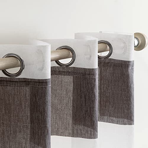 MIULEE Tende Voile Trasparenti con Anelli per Camera da Letto Salotto Cucina Modbido Moderne Camerette 2 Panelli Marrone Scuro 140x145 CM