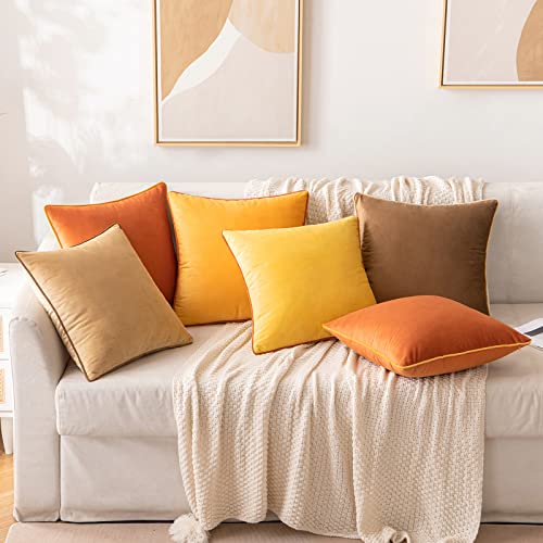 MIULEE Velluto Federe Cuscini Divano Copricuscini Decorativi Moderno Morbido Resistente per Soggiorno Camera da Letto con Cerniera Invisibile 45X45 cm 2 Pezzi Ambra Cioccolato