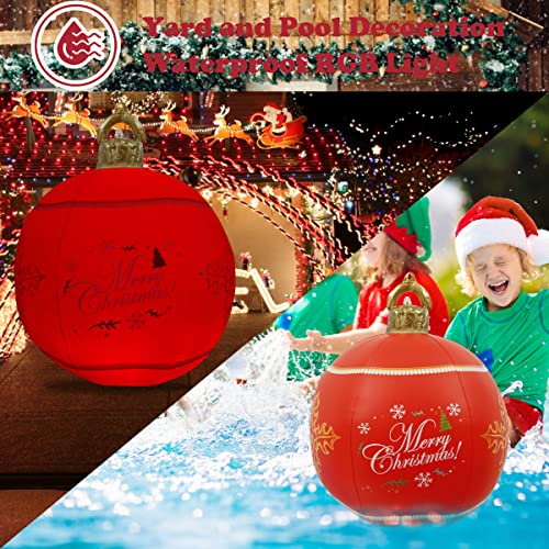 Miuline Palla di Natale gonfiabile con luce a LED e telecomando da 91,5 pollici gigante luminosa palla di Natale riutilizzabile gonfiabile decorata palla per giardino cortile portico piscina (rosso 1)