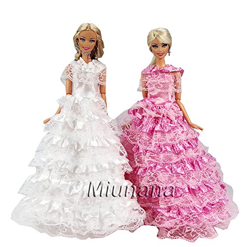 Miunana 2 PCS Abiti Da Sposa Elegante Spalla Unica Per Bambola Barbie Dolls (Bianco Violetto)