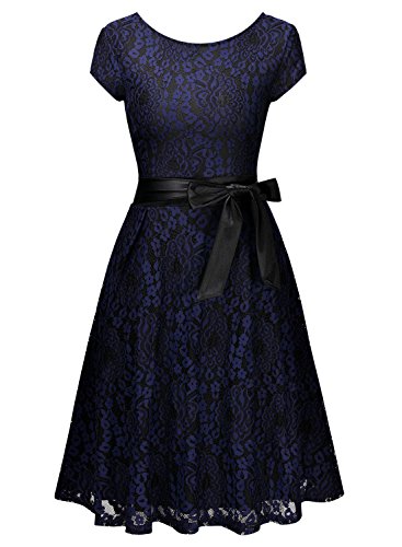 MIUSOL Pizzo Vestito Donna Vintage Maniche Corta Vestiti da Sera Con Cintura