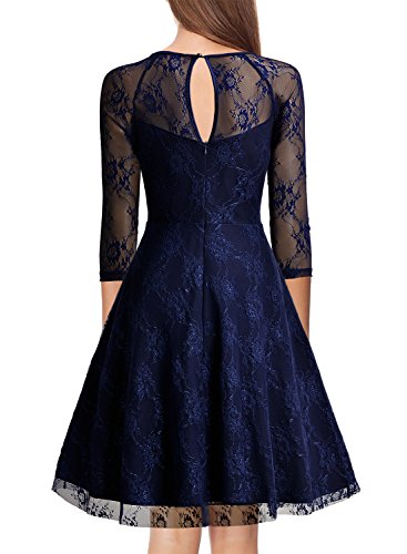 MIUSOL Vintage Chiffon Pizzo Coctel Vestito Donna Corta Blu Medium