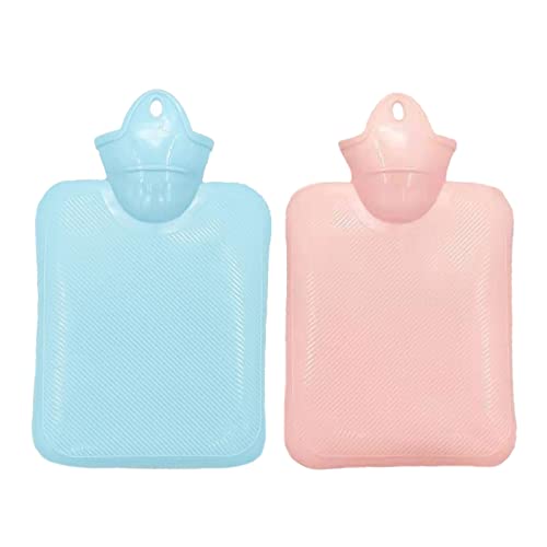 MIVAIUN Due 500ML Borsa Acqua Calda Hot Water Bottle con Coperchio Piccolo Sacchetto di Acqua Calda Caldo in Inverno Adatto a Donne Anziani Bambini Borse di Acqua Calda 2 Colori (Pink and Blue)