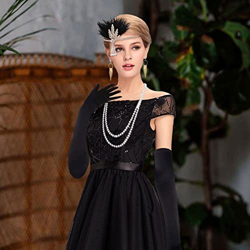 Progettato in stile vintage: Lo stile retrò vi riporta agli anni Venti. Ti farà apparire più affascinante, speciale e bella. Copricapo di piume con dettagli di piume e gioielli, guanti di raso di lunghezza elegante e di ispirazione vintage, collana in stile classico senza tempo.