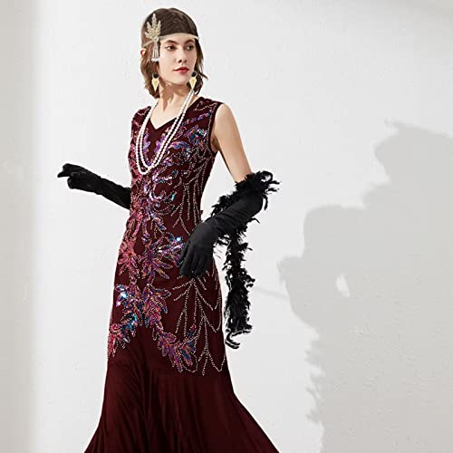 Accessori anni '20: Riceverete un paio di guanti lunghi, 1 pezzo di collana di perle, 1 pezzo di fascia per capelli anni '20, 1 pezzo di supporto, un paio di orecchini. Stile anni '20, elegante e bello, comodo da indossare.