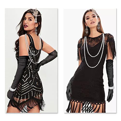 MIVAIUN 6 Pezzi 1920s Accessori Gatsby per Donne, Anni '20 Accessori Set, Flapper Great Gatsby Costume Accessori, Nero, Taglia unica, per la Festa Degli Anni '20, Halloween, Mascherata (set C)