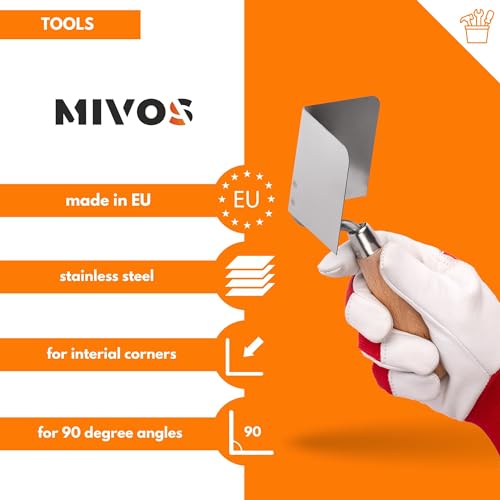 Mivos Cazzuola Angolare Antiruggine 80 x 60 mm - Cazzuola Angolare Interna in Acciaio Inox - Spatola Angolare Interna con Manico in Legno - Cazzuola Angolare per la Lavorazione di Angoli