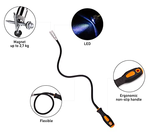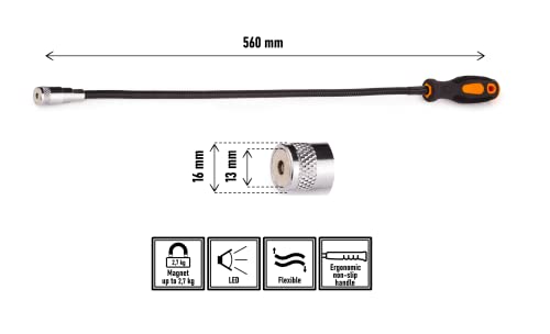 Mivos Sollevatore Magnetico Flessibile con LED - Asta Magnetica Flessibile 560 mm - Pinza Magnetica - 2,7 kg Forza di Trazione - Utensile Magnetico
