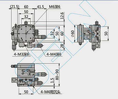 Miwaimao XYZR Four-Axis 60X60mm Adjustable Linear Stage Cross-Roller Bearing Precision for Automation Sliding Linear CNC Equipment