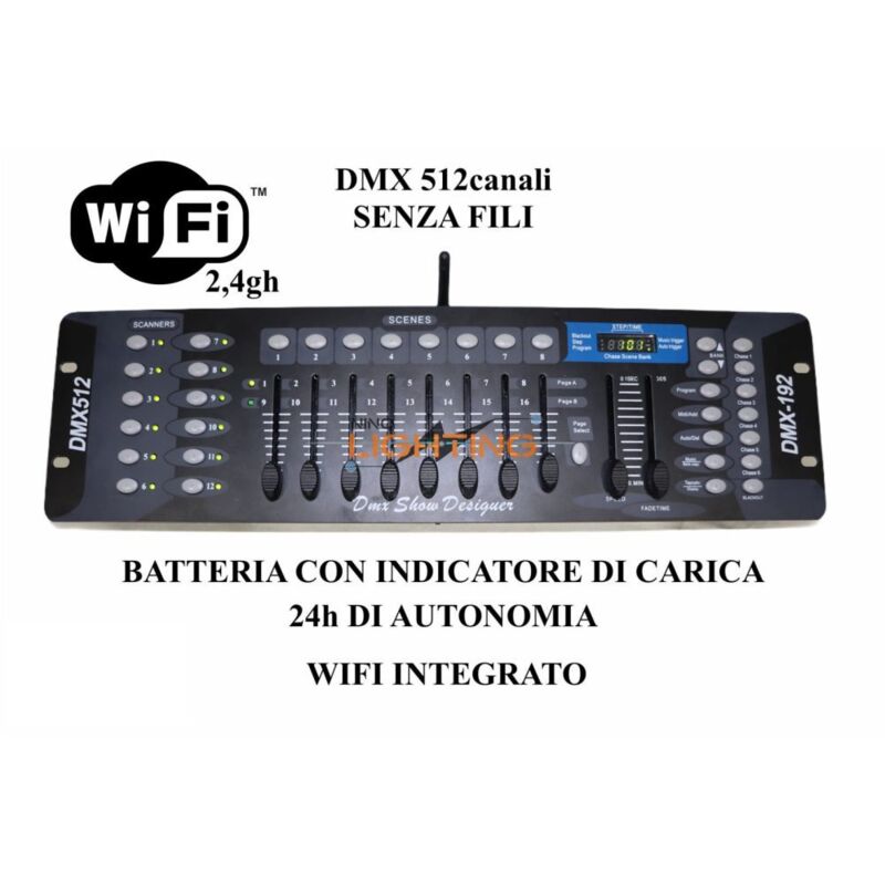 Centralina wireless DMX512 192 Canali WiFi 2.4G Integrato Senza Fili SISTEMA A BATTERIA CON WIFI 2.4G INTEGRATO PENNE BATTERY WIFI DMX CON NUOVA CENTRALINA DMX 512 CANALI DOVE POTRAI GESTIRE LE TUE LUCI O DISPOSITIVI TESTE MOBILI DMX SENZA L'USO DI FILI E CAVI LA CENTRALINA DMX LA PUOI USARE DOVE VUOI CON 24H DI AUTONOMIA E WIFI INTEGRATO Grazie al ricetrasmettitore wireless puoi sbarazzarti di infiniti fili Specifiche tecniche: 2.4G wireless DMX512 R / T Tensione di ingresso: 5 V CC 500 mA MIN Ricevi sensibilità: -94dBm Massima velocità di trasmissione: 20dBm Distanza di comunicazione: 400 M (distanza visibile) Sezione di frequenza di lavoro: 2.4G ISM, intervallo di frequenza di 126 canali Spina standard: o spina europea (opzionale) Materiali usati: lega di zinco e plastiche polimeriche Come stabilire la comunicazione: 1. Accendere prima la scheda di ricezione wireless DMX512, quindi accendere la scheda trasmessa. 2. Premere il tasto "Key" per impostare il valore ID uguale della