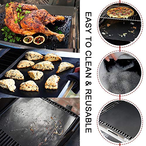 Mixigoo Tappetino BBQ, Stuoia Grill Barbecue, Grill Mat Antiaderente, Riutilizzabile, Lavastoviglie, Alte Temperature,Nero, Cucinare Dolci
