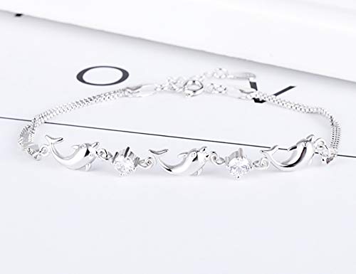 MixiuEuro Braccialetti per ragazze da donna, Argento sterling 925 CZ Zirconi cubici Ametista Dolphin Love Braccialetti Gioielli Regalo per ragazze (White)