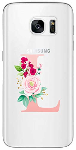 Mixroom - Cover Custodia Case in TPU Silicone Morbida Sfondo Trasparente per Samsung Galaxy S7 Edge Fantasia Iniziali Lettera L Rosa