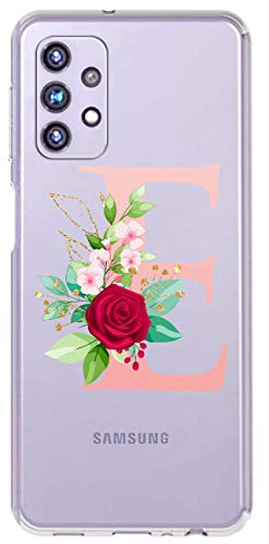 Mixroom - Cover Custodia Case in TPU Silicone Morbida Sfondo Trasparente per Samsung Galaxy A52 / A52 5G / A52s 5G Fantasia Iniziali Lettera E Rosa