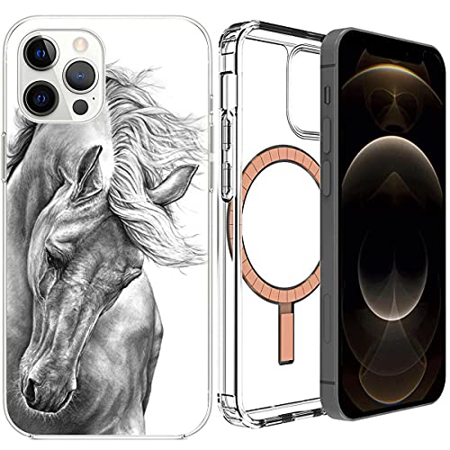 Mixroom - Cover Custodia per iPhone 11 PRO con Cerchio Magnetico Compatibile con l'Alimentatore MagSafe Fantasia Cavallo Bianco E Nero 597