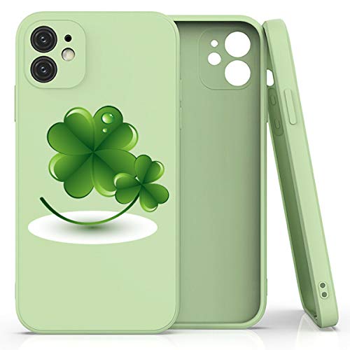 Mixroom - Cover Custodia per iPhone 12 in Silicone TPU Opaco con Bordi Piatti Colore Verde Chiaro Fantasia Quadrifoglio 1075