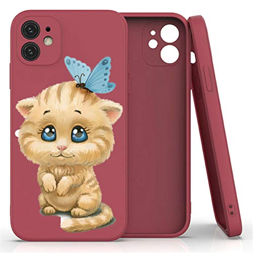 Mixroom - Cover Custodia per iPhone 13 PRO in Silicone TPU Opaco con Bordi Piatti Colore Rosso Fantasia Gattino E LA Farfalla 1072