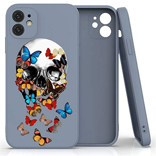 Mixroom - Cover Custodia per iPhone 11 PRO Max in Silicone TPU Opaco con Bordi Piatti Colore Blu Fantasia Teschio E Farfalle 512