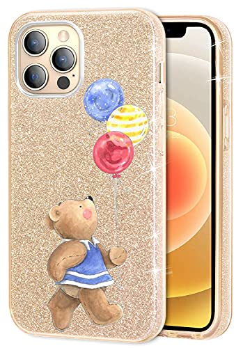 Mixroom - Custodia Cover Case per iPhone 11 PRO in TPU Morbido Oro con Brillantini Glitter 3 in 1 Fantasia Orsetto con Palloncini codice BR415