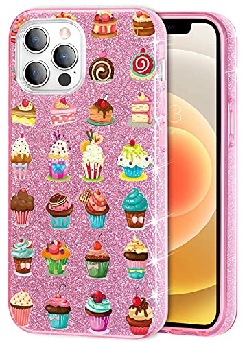 Mixroom - Custodia Cover Case per iPhone 12 in TPU Morbido Fucsia con Brillantini Glitter 3 in 1 Fantasia Mix di Dolcetti codice BR411