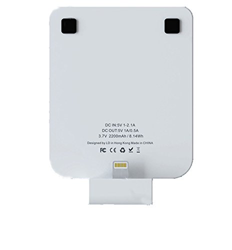 Miya, batteria portatile ultrasottile per iPhone 5, 6 (2014), 6S (2015) e iPad, capacità da 2200 mAh, PLASTICA, white, 4 x 3 x 1 inches
