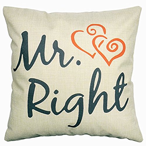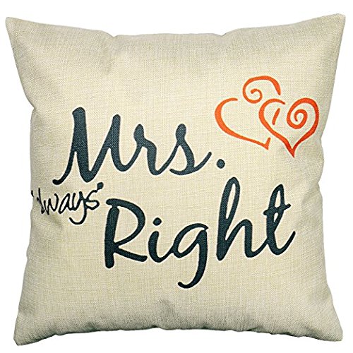Miya@ Coppia di copricuscini in cotone, per divano, ottima idea regalo, motivo: Mr Right/Mrs Always Right