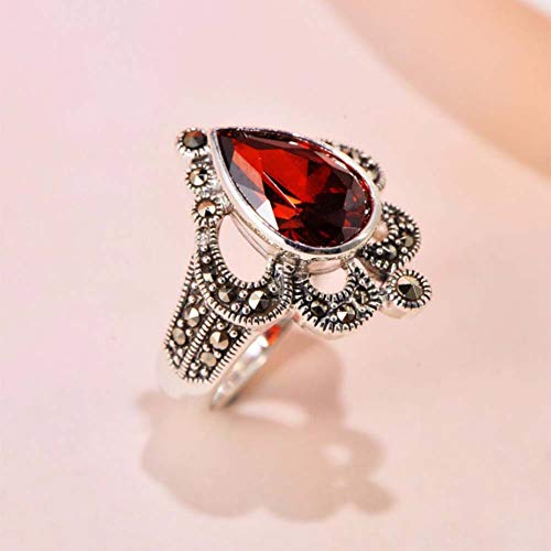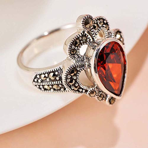 MIYUAN - Anello classico in argento Sterling 925, stile vintage, da donna, con zircone rosso e Argento, 16 1/2, cod. MYR060041
