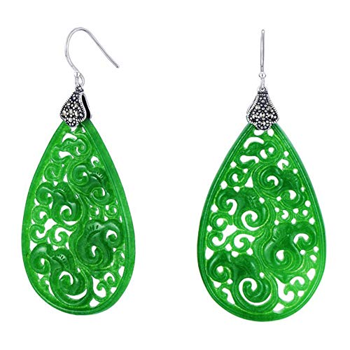 MIYUAN 925 Argento Giada Antico Ciondola Orecchini Goccia Cina Stile Delle Donne Orecchio Gioielli e Argento, cod. MYE092
