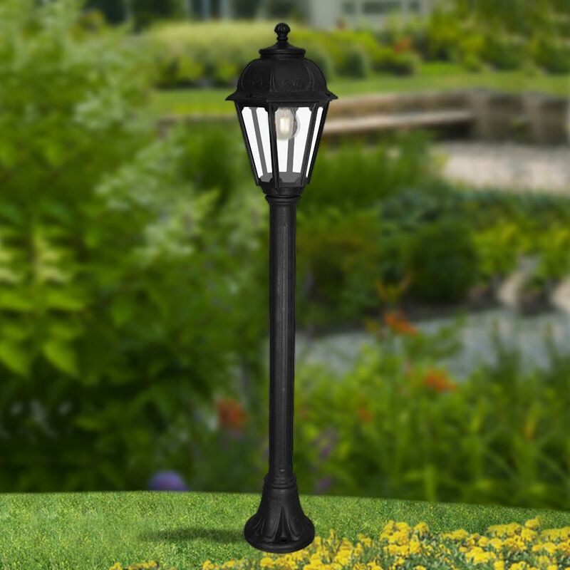 Paletto da Giardino .Lanterna esagonale E27 in stile classico, realizzata in resina antiurto, stabilizzata ai raggi UV, inattaccabile da ruggine e corrosione. Idonea per il montaggio a palo. Fornita anche completa di lampadine LED E27. Classe di isolamento II, grado di protezione IP55. DIMENSIONI: .larghezza: 220mm altezza: 1100mm MATERIALE: .resina (corpo), PMMA (diffusore) PESO: .2400gr LAMPADA: .E27 INSTALLAZIONE: .viale, giardino:Scheda tecnica=Clicca Qui