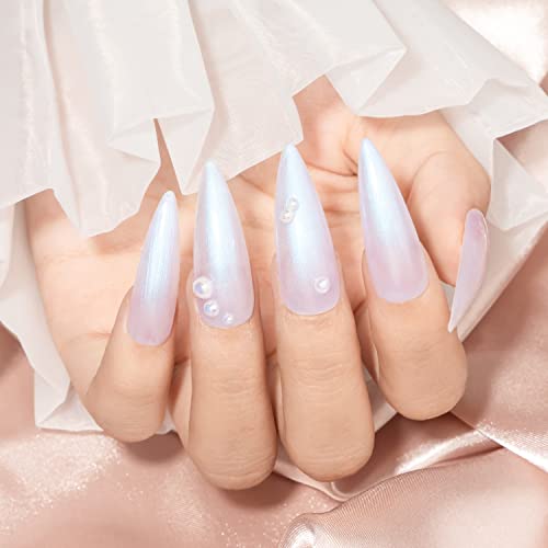 Perle luccicanti: il gel per unghie bianco perla con un sottile effetto luccicante, semplice ed elegante, senza tempo, può evidenziare molto bene il temperamento. Puoi fai-da-te come preferisci.