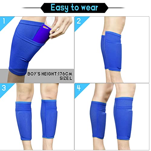 Mizijia Parastinchi da Calcio Calzino, Parastinchi Con Tasca, Partita di Calcio Protezione Gambe Maniche per Bambino, Giovani, Uomo, Unisex Adulto. (Blu, S)