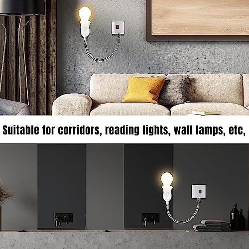 Mizikuu 2 Pezzi Portalampada E27, Senza Fili Portalampada con Interruttore Girevole 360° Portalampada con Presa Elettrica Lampadine Adattatore con Braccio Flessibile per Camera, Cucine, Corridoi