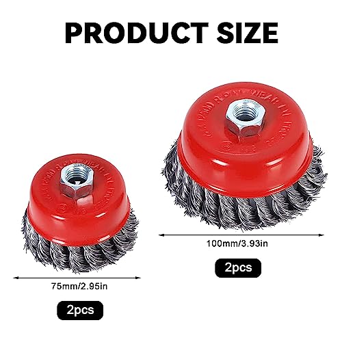 Mizikuu 4 Pezzi Spazzola per Smerigliatrice Angolare, Spazzola a Filo Conico Millimetri Tazza Ø 75 mm e 100 mm per Smerigliatrice Angolare Ruggine Rimozione
