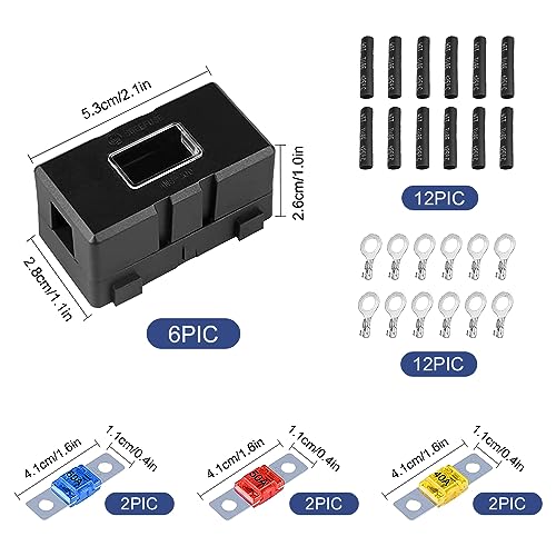 Mizikuu Portafusibili per Auto, 6 Pezzi Midi Fusibili Auto 6 Pezzi ANS Portafusibili per autoveicoli avvitabili ad alta corrente porta Fusibile Imbullonato per Auto,Camion, Camper 200A