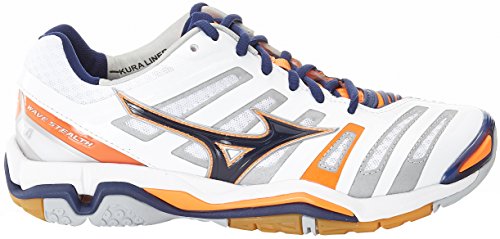 Mizuno Wave Stealth 4, Scarpe da Ginnastica Uomo, Bianco (White/Blue Depths/Orange Clown Fish), 44.5 EU