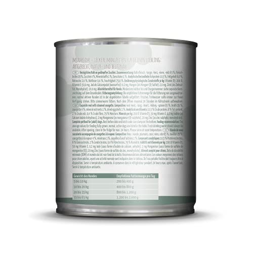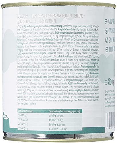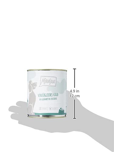 MjAMjAM - cibo umido premium per cani - ottimo vitello con zucchine al vapore, confezione da 6 (6 x 800 g), senza cereali con carne extra