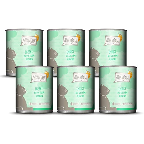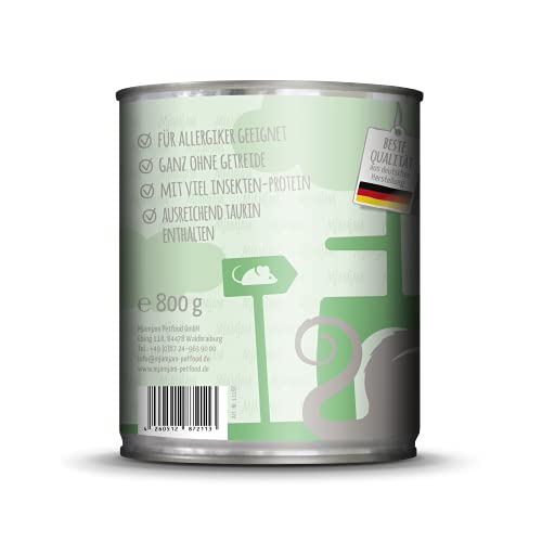 MjAMjAM - cibo umido premium per gatti - Insetti con pollo succoso, confezione da 6 (6 x 800 g), senza cereali con proteine di insetti