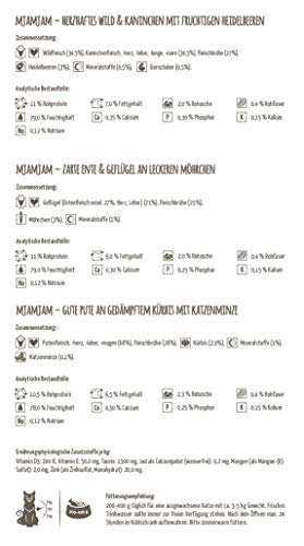 MjAMjAM Cibo umido premium per gatti, pacchetto mix II, pollo e zucca, tacchino, anatra e pollame, confezione da 6 (6 x 200 g), senza cereali con carne extra