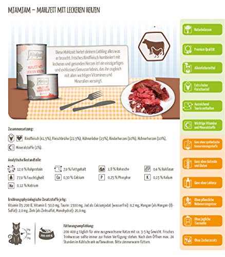 MjAMjAM - cibo umido premium per gatti - pasto con deliziosi cuori, confezione da 6 (6 x 400 g), senza cereali con carne extra