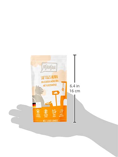 MjAMjAM - cibo umido premium per gatti - Quetschie - pollo succoso con deliziose carote, confezione da 12 (12 x 125 g), senza cereali con carne extra