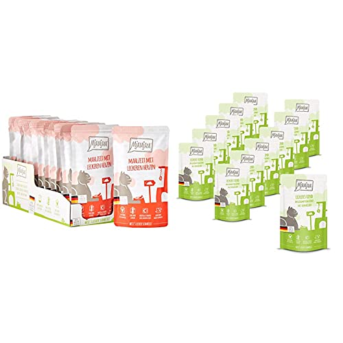 MjAMjAM Mangime Umido per Gatti, Pasto con Cuori Deliziosi, senza Cereali - Pacco da 12 x 125 g & Mangime Umido per Gatti, Delizioso Bovino Accompagnato da Zucca Cotta a Vapore con Fegato di Pollo