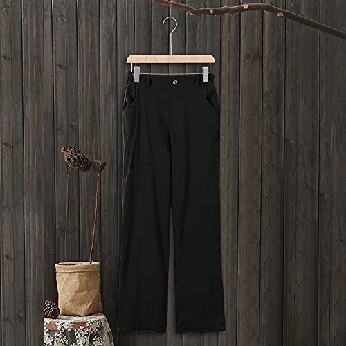 MJGkhiy Pantaloni estivi in lino, lunghi 7/8, eleganti, comodi e traspiranti, da spiaggia, con tasche, taglie forti, per attività all'aria aperta, da lavoro, da uomo e da donna, 01 # nero., S
