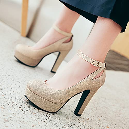 MJIASIAWA Bride con Cinturino alla Caviglia Brillantini Sposa Tacco Alto Plateau Pump Vestito Sequin Donna Serata Tacco A Blocco Pump Oro Numero 41 EU/43 Asiatico