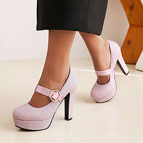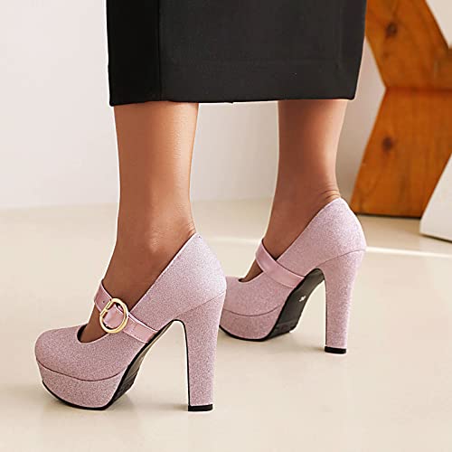 MJIASIAWA Bride con Cinturino alla Caviglia Stylish Tacco Alto Plateau Sposa Scarpe Sequins Closed Toe Tacco A Blocco Pump Serata Vestito Viola Numero 41 EU/43 Asiatico