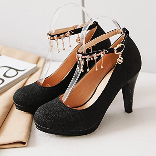 MJIASIAWA Bride Tacco Alto Sposa con Cinturino alla Caviglia Eleganti Closed Toe Pump Sequin Formal Vestito Donna Plateau Pump Nero Numero 42 EU/44 Asiatico