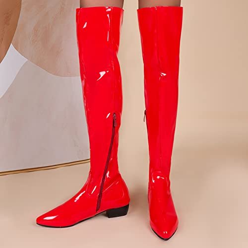 MJIASIAWA Donna Appuntito Inverno Vernice Sopra Il Ginocchio Tacco Medio Vernice Boots Zip Thigh Vestito Festa Prom Warm Boots Rosso Numero 37 EU/38 Asiatico