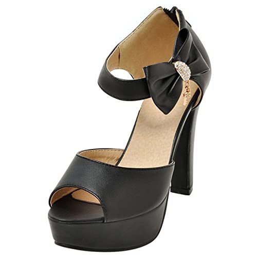 MJIASIAWA Donna Bridal Tacco Alto Con Cinturino Alla Caviglia Peep Toe Sandali Con Bows Zip Tacco A Blocco Sposa Vestito Serata Scarpe Nero Numero 34 Eu