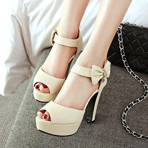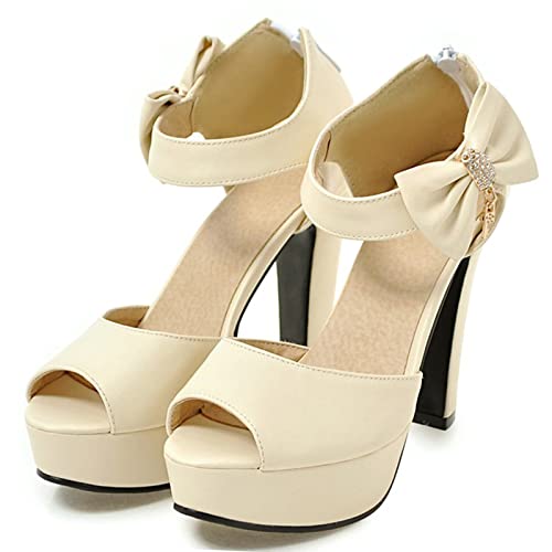 MJIASIAWA Donna Bridal Tacco Alto Con Cinturino Alla Caviglia Peep Toe Sandali Con Bows Zip Tacco A Blocco Sposa Vestito Serata Scarpe Beige Numero 31 Eu