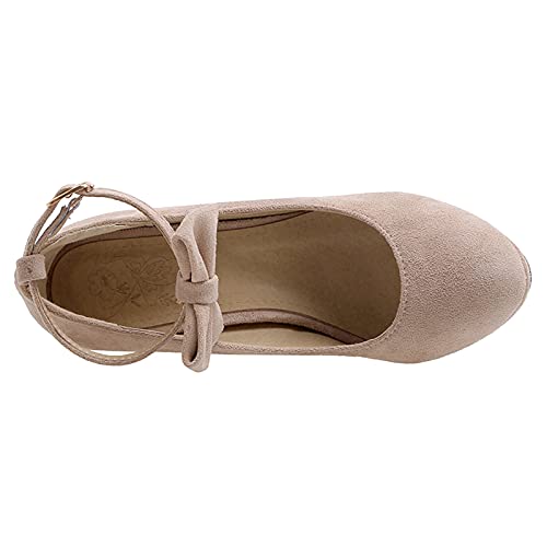MJIASIAWA Donna Closed Toe Mary Jane Serata Festa Tacco A Blocco Plateau Pump Bows Sposa Tacco Alto Bride Moda Scarpe Beige Numero 37 EU/38 Asiatico
