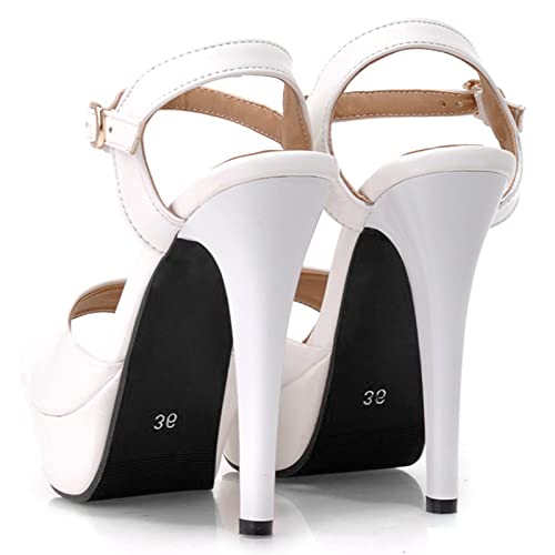 MJIASIAWA Donna Peep Toe Tacco A Spillo Serata Vestito Sandali Sposa Vestito Bride Tacco Alto Con Cinturino Alla Caviglia Festa Scarpe Bianco Numero 38 EU/39 Asiatico